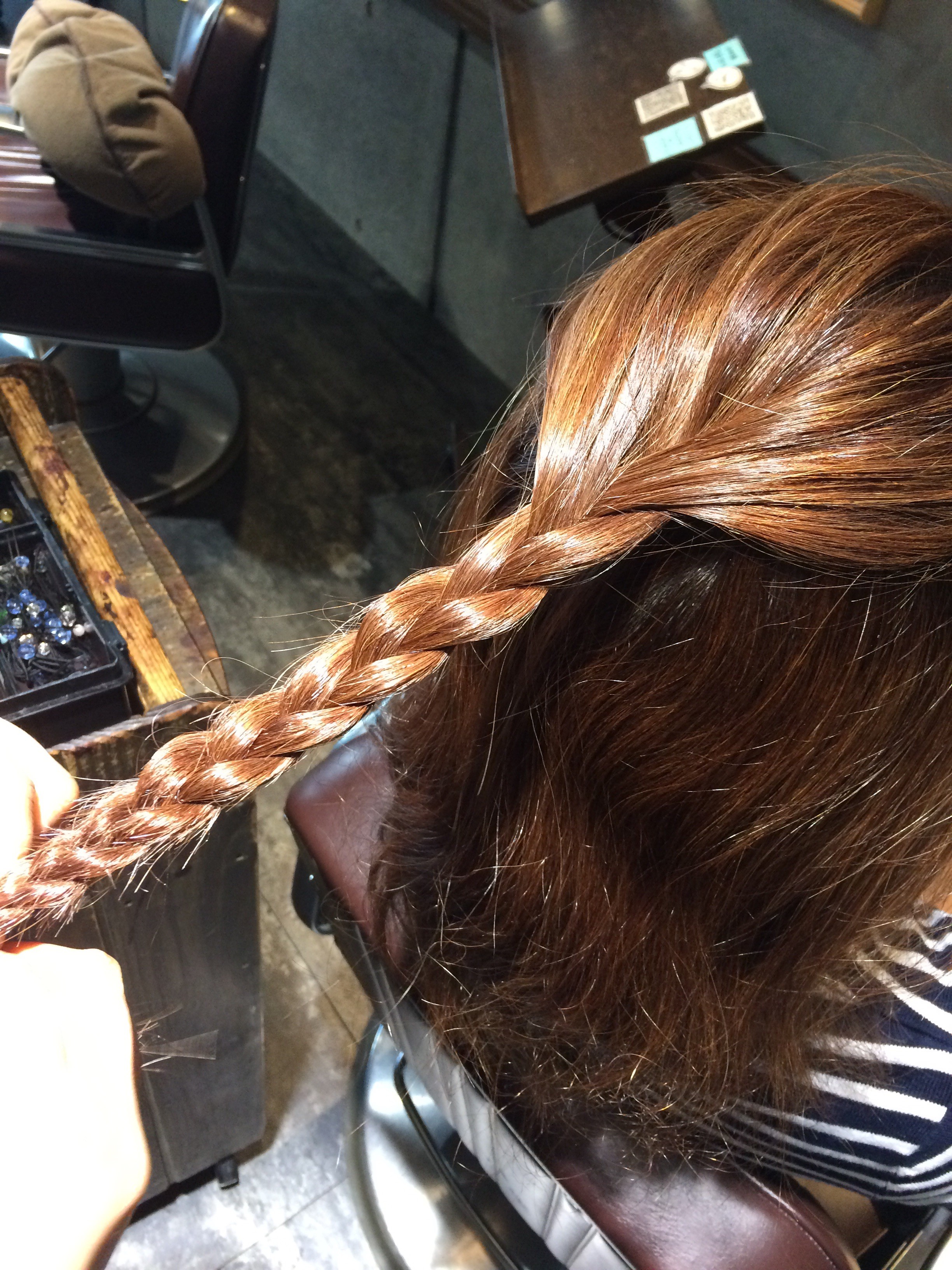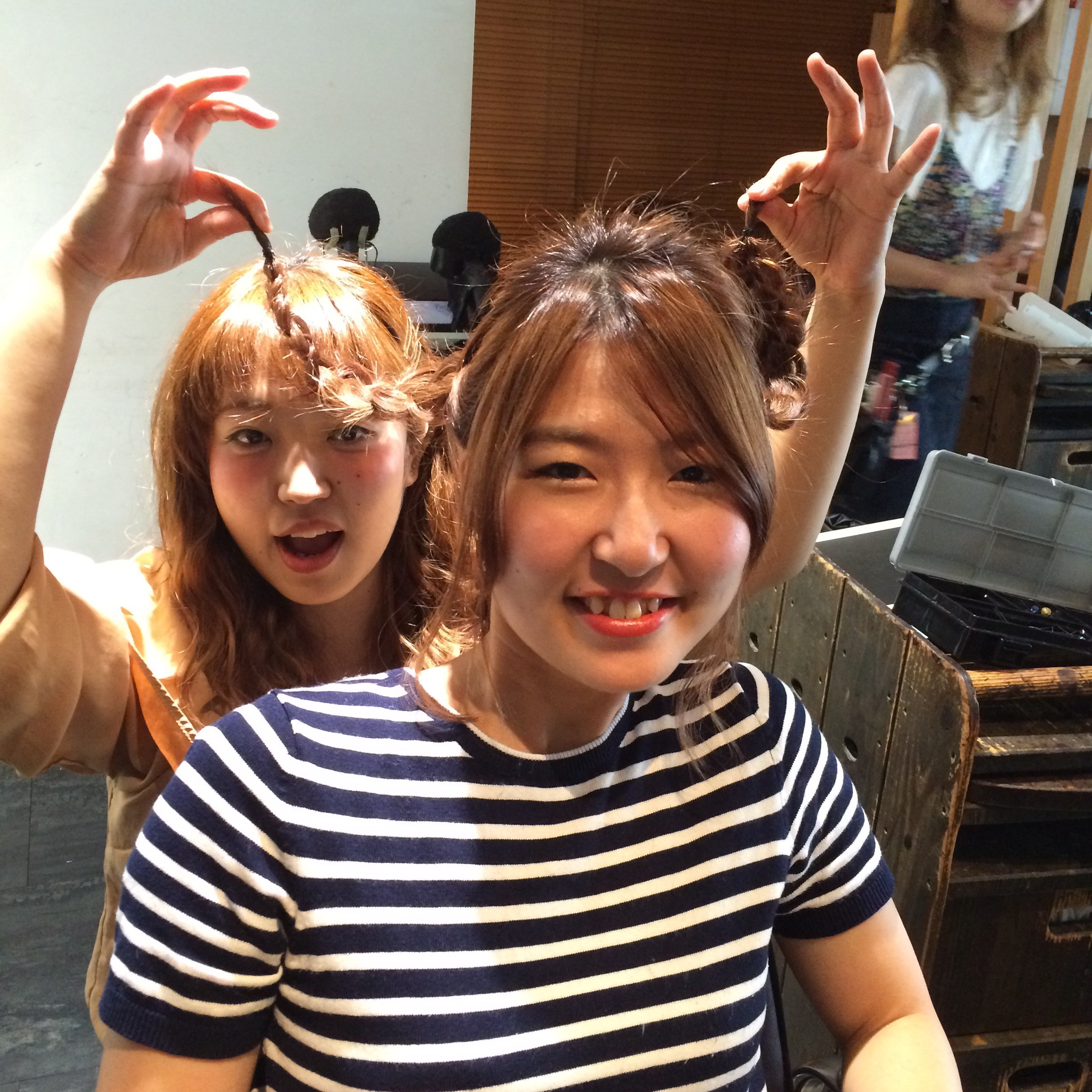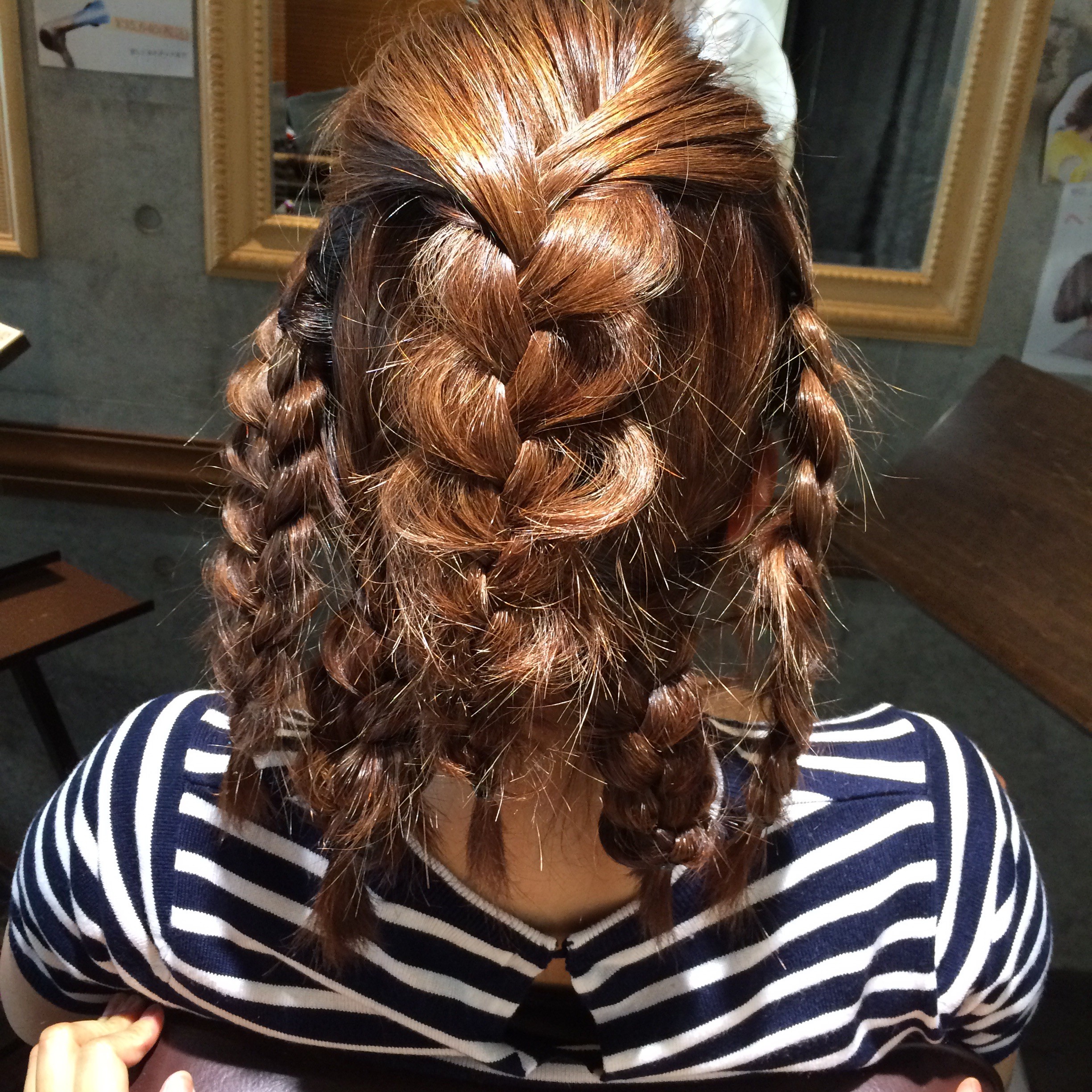 ヘアアレンジ Posted on 2016年6月27日 『特別な日は』 こんにちは。 武田香織です。 ずっとショートカットだった私ですが 最近は髪を伸ばすことにして、、 お団子ができるまでに成長。 せっかくアップにできる長さ、、 私も可愛くアレンジしたい! とゆうことで、アレンジのスペシャリスト塩田千紘にお願いしました! あみあみ 三つ編みを5本 ゆるく出すのがポイントです 朝から元気です どん! 後ろと横の後れ毛もポイントのゆるふわアレンジです 髪の毛が可愛いとテンションも上がります! これからもよろしくお願いします。 CHROMA武田香織
