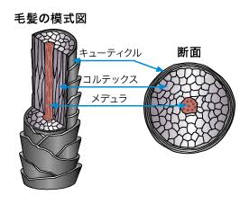 キューティクルとは髪の内部のタンパク質などの栄養素や水分が外に流れ出内容に髪の外側を保護している膜のようなもの。