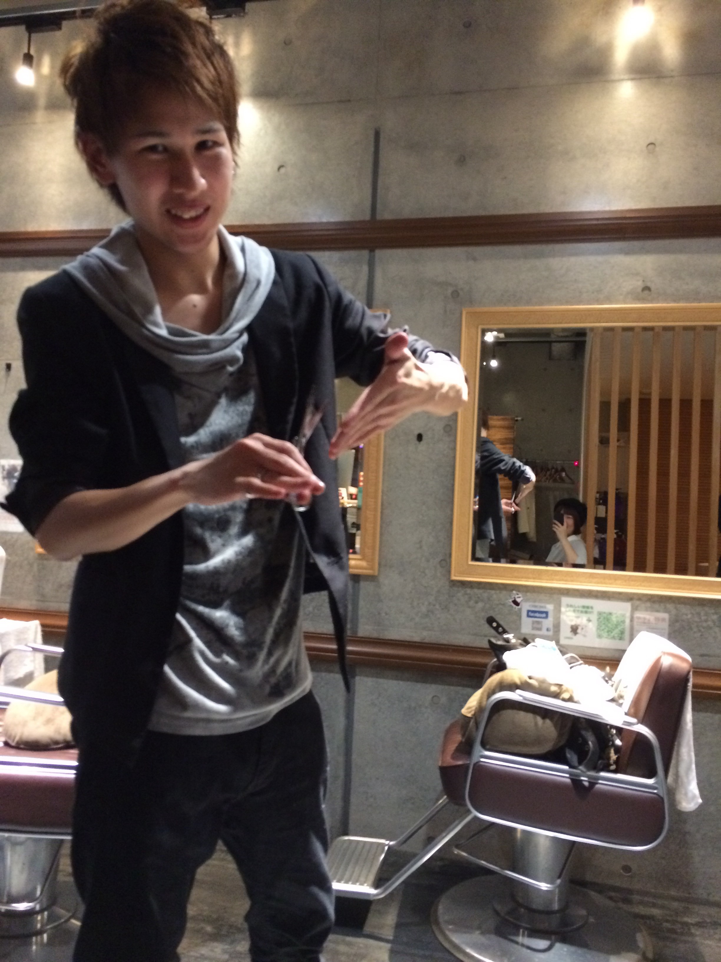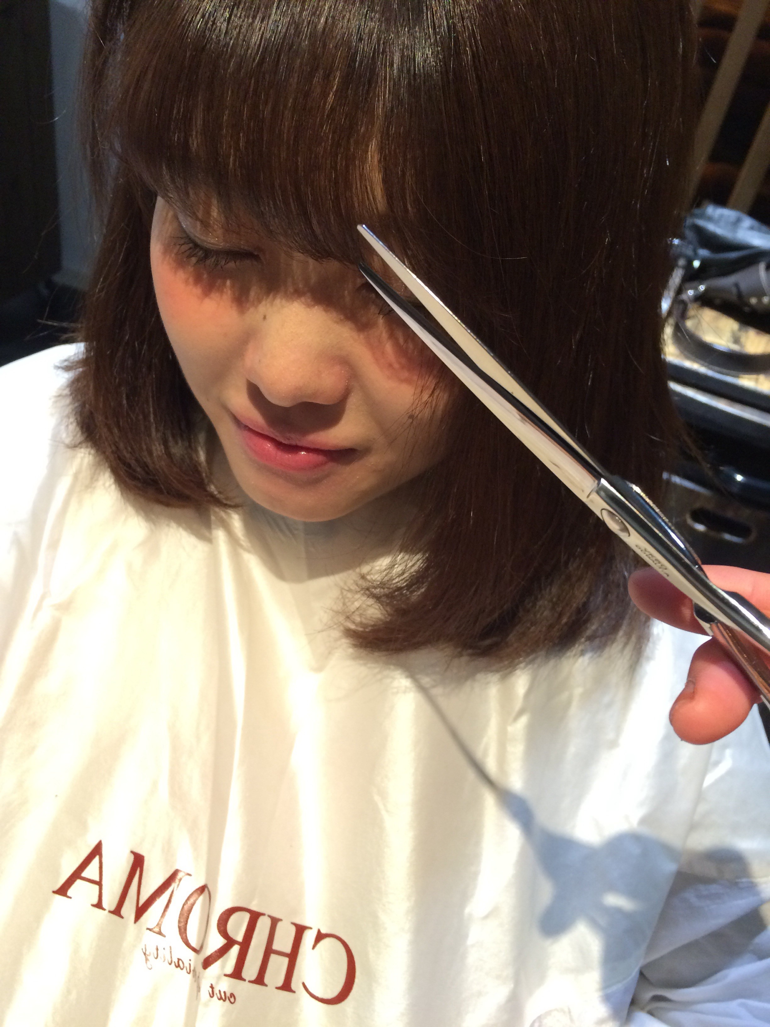 首長効果 Posted on 2015年11月21日 『チョキ』 今日は私です。 武田香織です。 わたくしごとですが、、、 髪を切りました! 山田くんに切ってもらったのではありません。 シャンプーをしてもらいました! 店長の利川にお願いして、、、 じゃん!! 襟足ギリギリをねらったボブです! 首が細長く見えませんか? お気に入りです!! そして私は佐久間啓子の前髪を切ってます♪ チョキ♪ CHROMA 武田香織