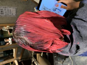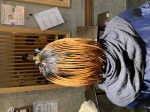 黒髪からブリーチをバレイヤージュ風に入れて襟足前髪だけポイントで根元からブリーチをしました!