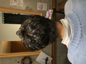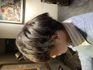 ストレート毛でハリハリしているので薬をしっかりつけます!