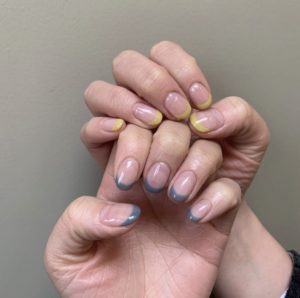 グレーブルーとライムイエローの2色でフレンチネイル!