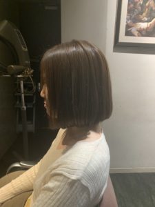 先日、いつも来て頂いているモデルさんをワンレンボブにしました。