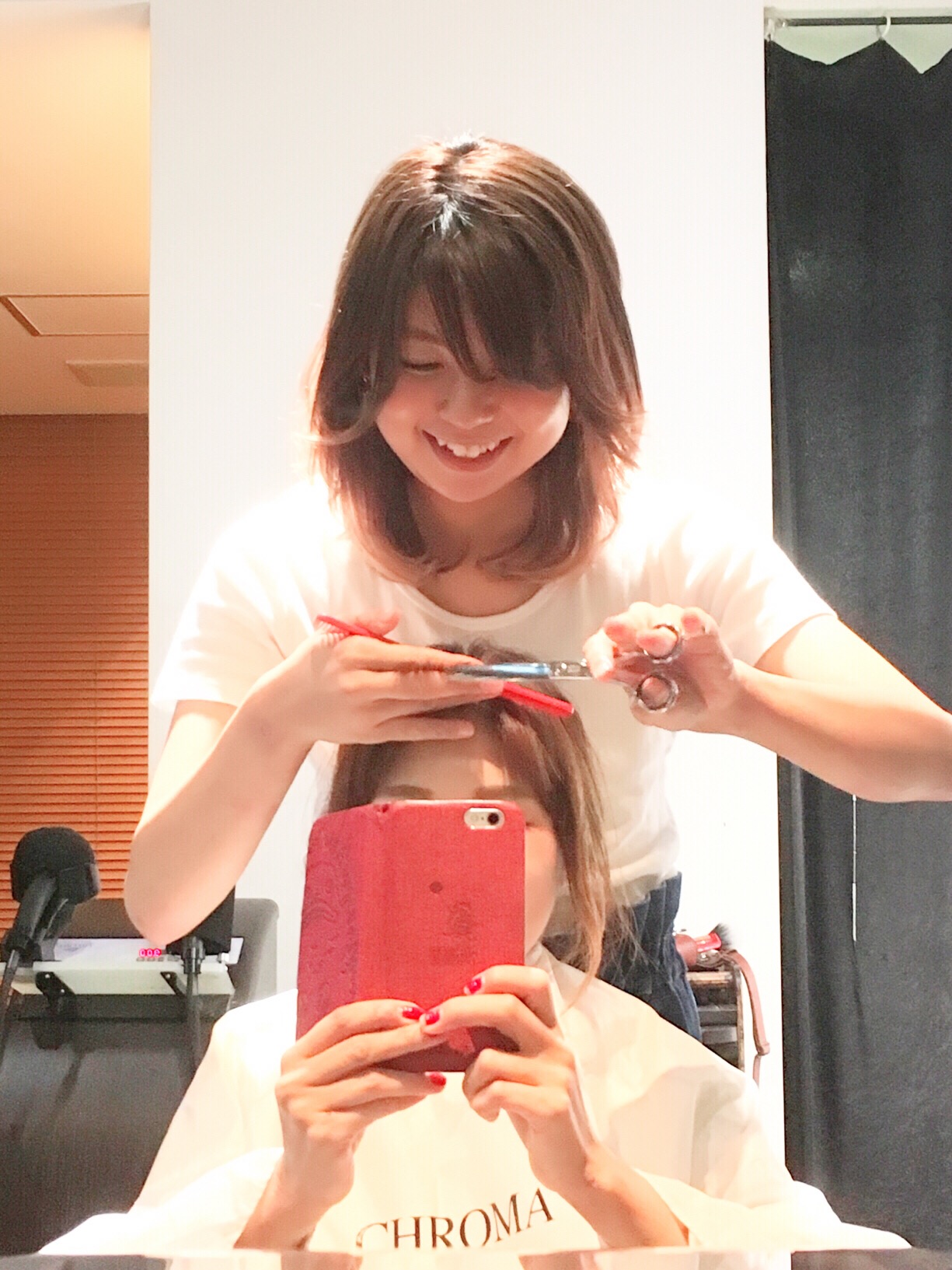 今須長に前髪を切ってもらっています♪