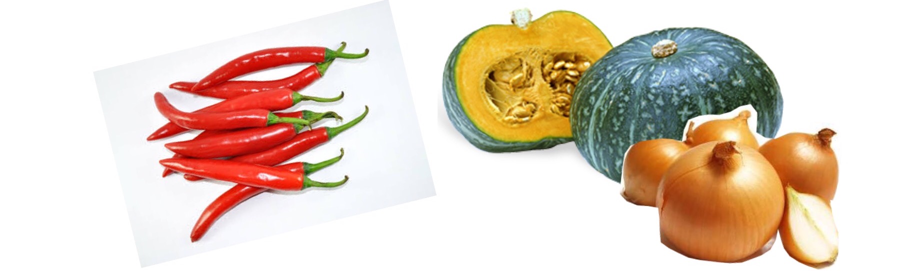 玉ねぎ、生姜、かぼちゃ、ごぼう