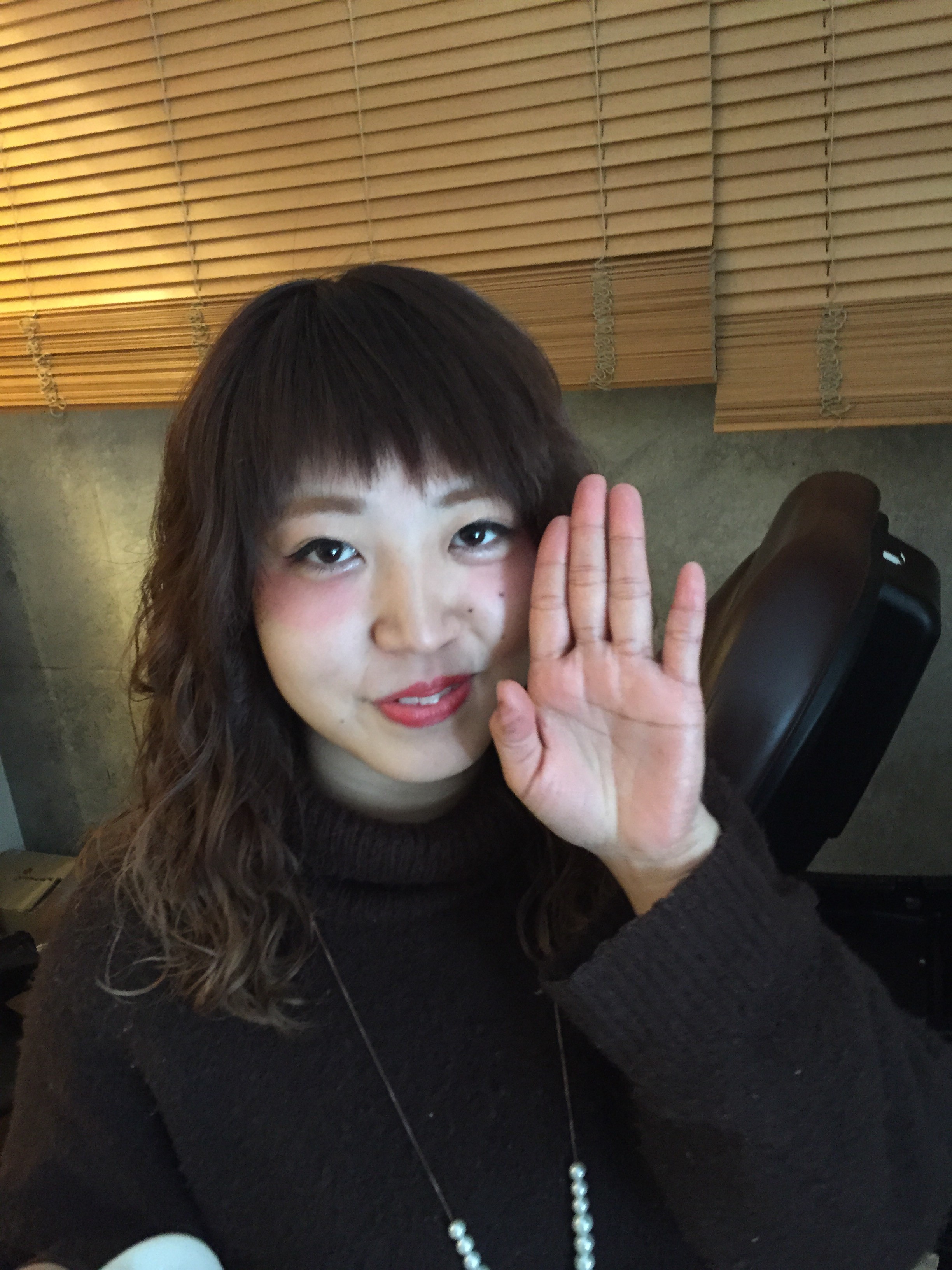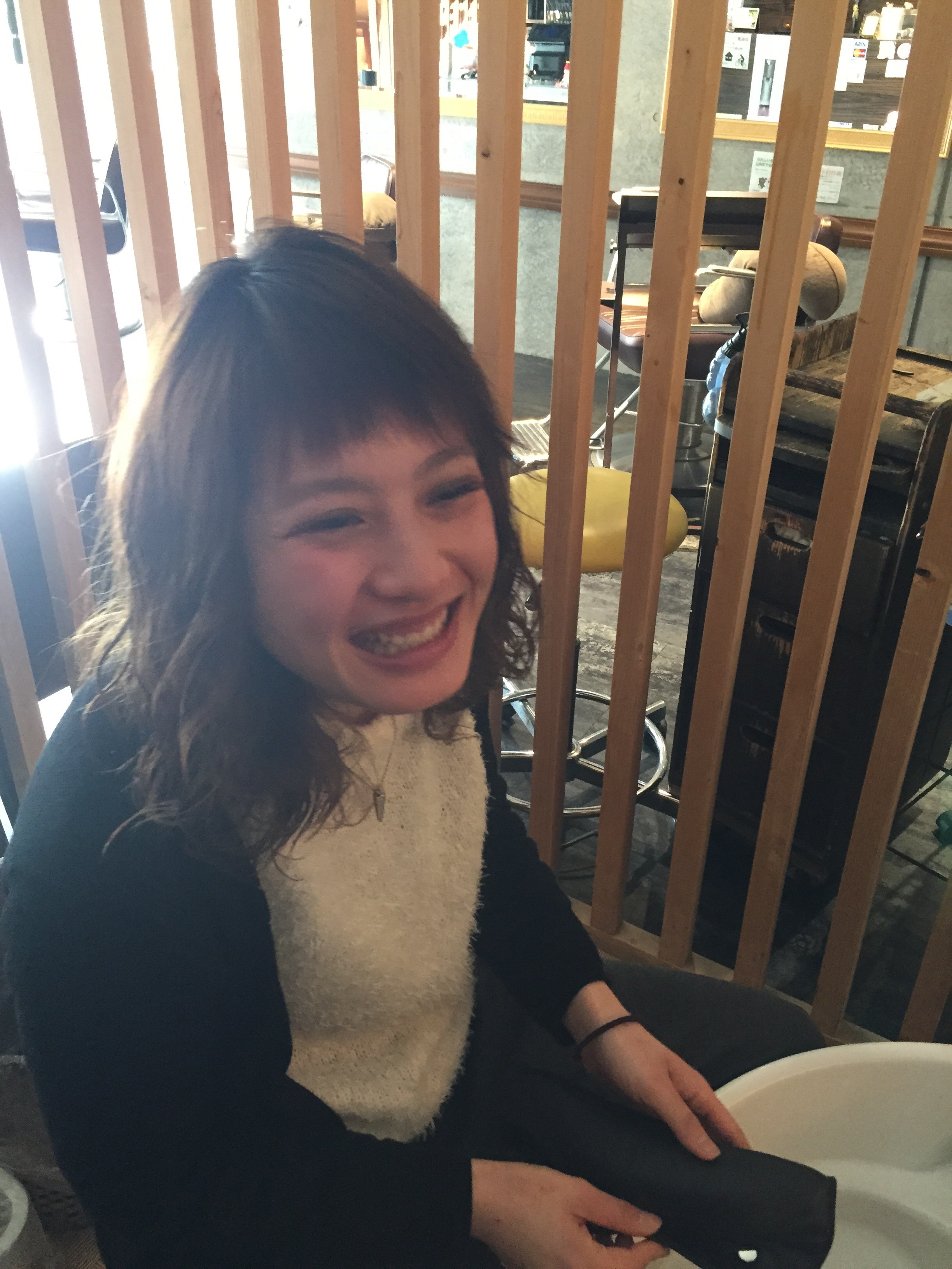4週目!2人目! Posted on 2016年2月11日 『この子もですよ』 2人目はこの子です 川崎で働いている すみこちゃんです 元気な女の子です! なっなんと地元は鶴見だとか・・・ 都会っこですな! よーく見ると よーく見ると・・ これは! ちひろと髪型がかぶってる!!! この前髪と! このパーマ感!!!! そんな楽しい2人と働いてます!! それではまた! CHROMA 及川貴弘