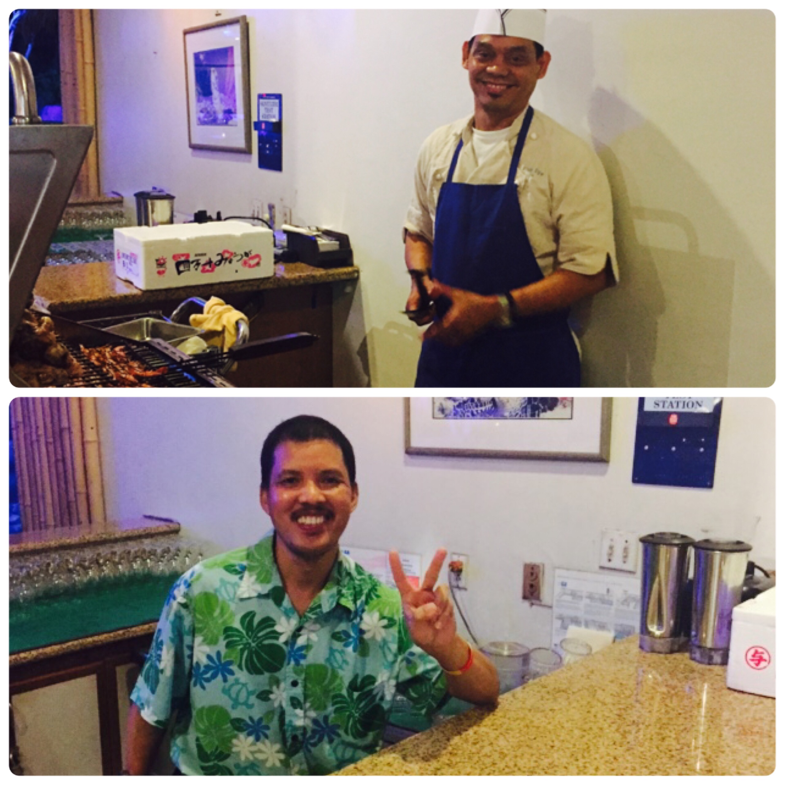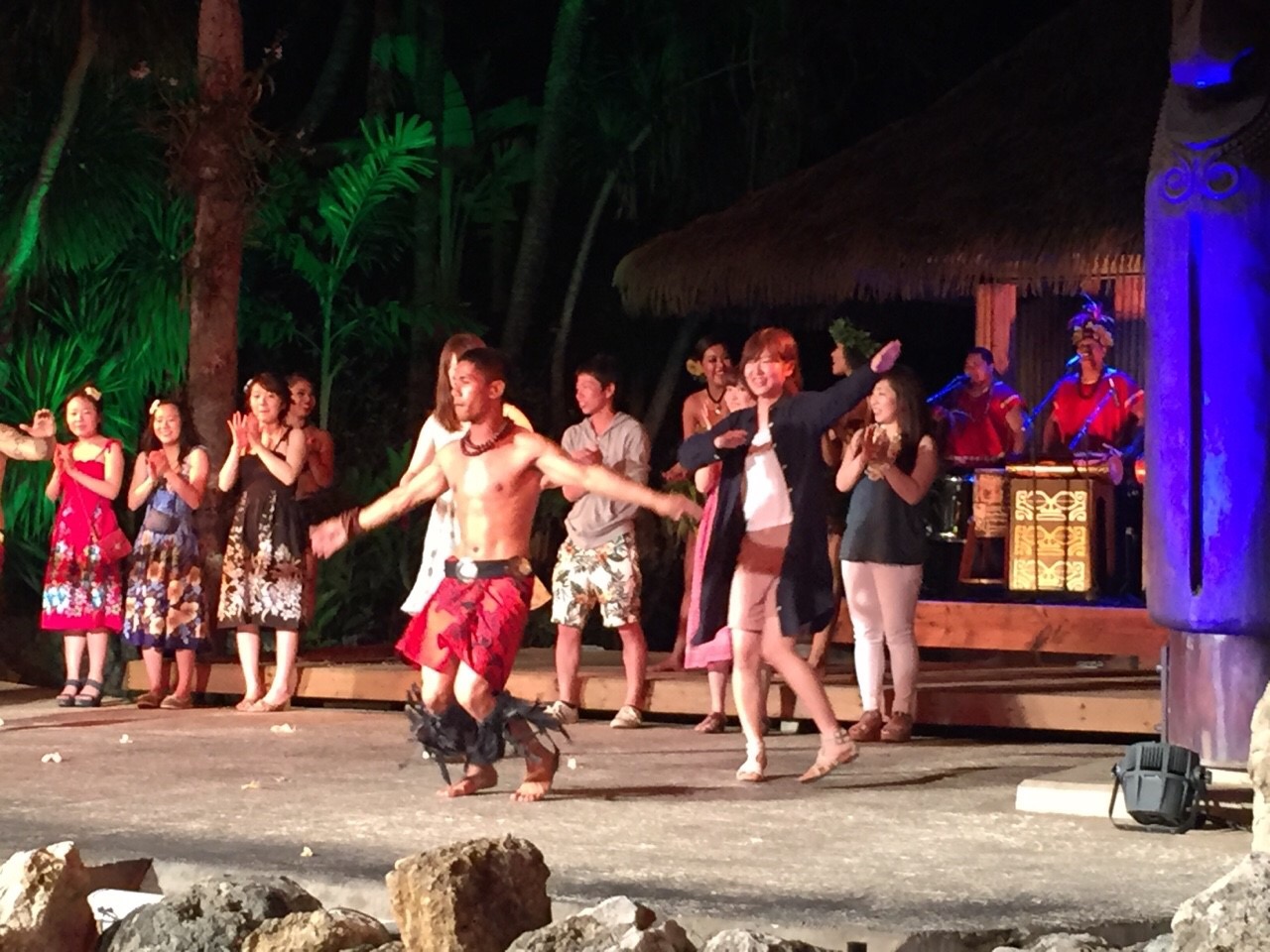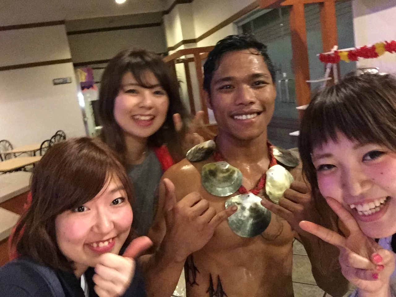 2日目の夜! Posted on 2016年2月18日 『ディナーショーでフィシュ料理』 2日目の夜はバスに乗って ディナーショーへ行きました!! ディナーショーの前に海底から魚を見ました 海が綺麗なので魚もしっかり見えました!! 女子は大興奮でした♪♪ ディナーショーは海のものを たくさん使った料理がありました! こんな陽気な方たちが料理を作ってました 日本と違い誰にでも陽気な声かけ 私たちも見習わなせれば!!! 武田もステージに上がりダンス♪ 楽しい2日目でした!! CHROMA 塩田千紘