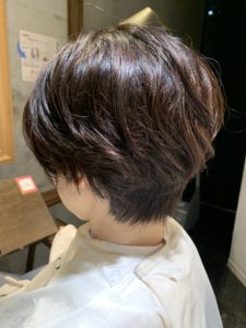 学生さんなので、毎朝のセットが楽になるようなショートスタイルにしました。