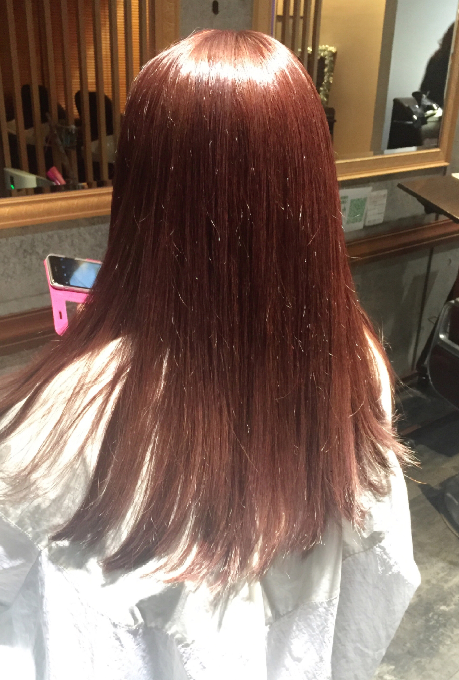 写真で分かりづらいですがピンクグレイに染めています!